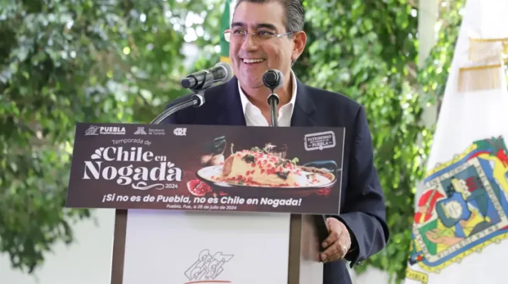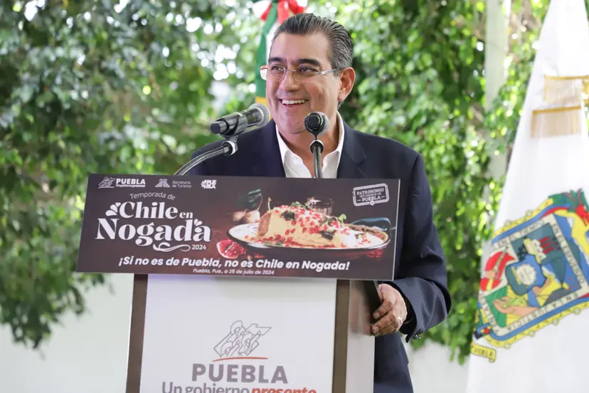 Puebla, Pue.- La cocina poblana tiene un lugar especial en el arte culinario mundial, comentó el gobernador Sergio Salomón al presidir el inicio de la “Temporada del Chile en Nogada 2024” y recibir el registro de marca de certificación de dicho platillo por parte del Instituto Mexicano de la Propiedad Industrial (IMPI).