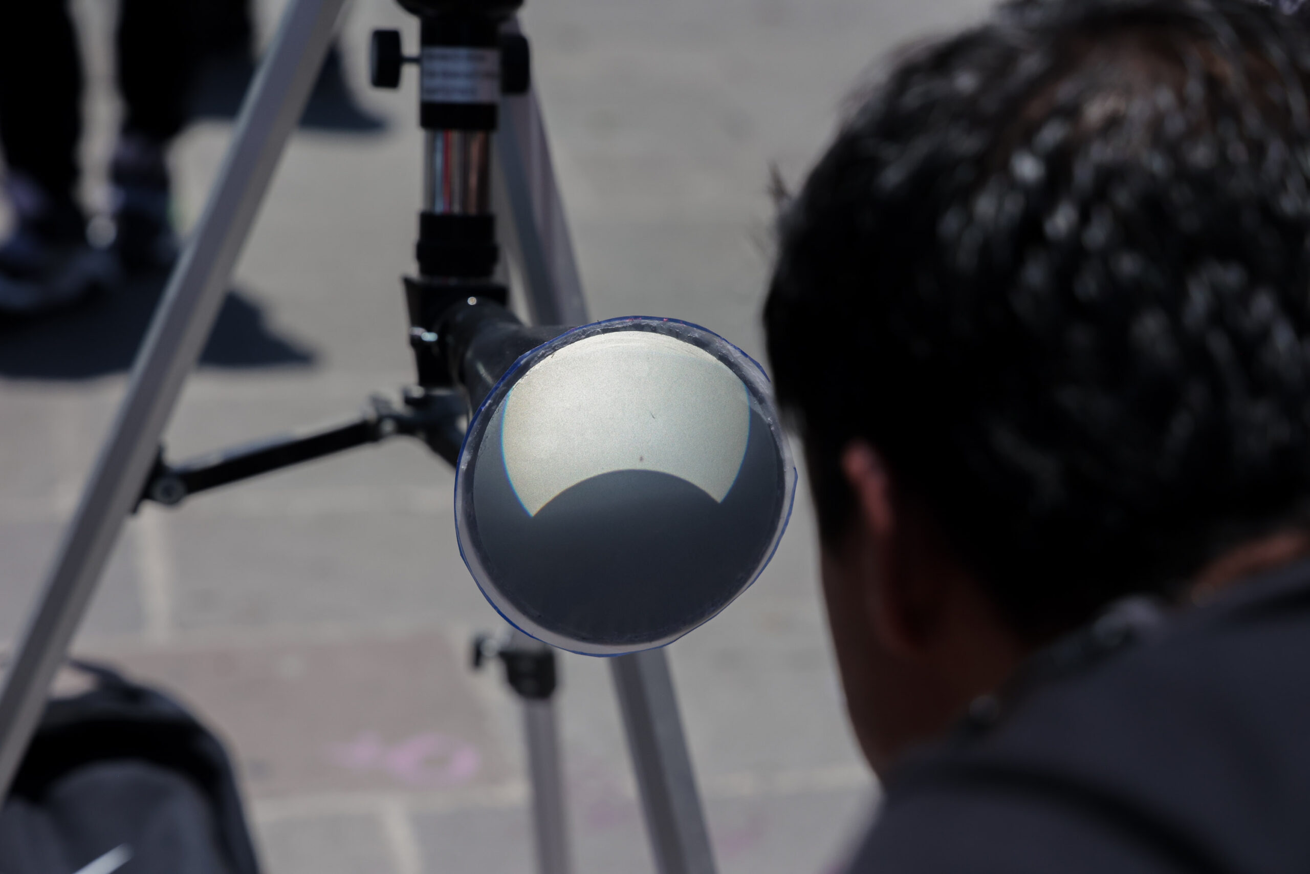 Es así que grandes y chicos disfrutaron este momento histórico, por lo que en el zócalo de Puebla se instalaron variedad de telescopios y otras opciones para vivir la experiencia de verlo en vivo y de forma segura.