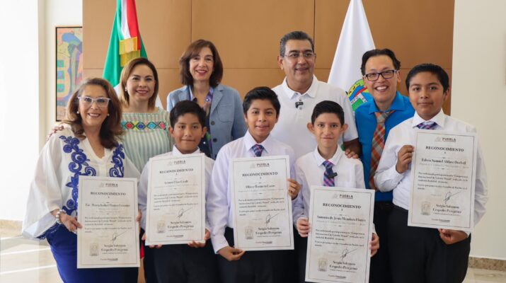 El gobernador Sergio Salomón Céspedes Peregrina reconoció a cuatro niños genios poblanos en cálculo mental.