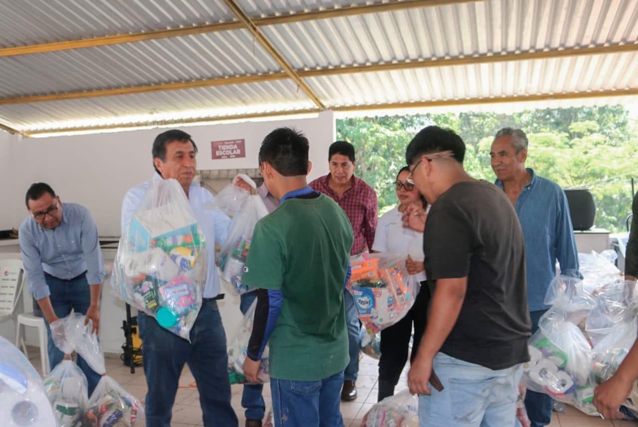 Con el apoyo del personal administrativo, el titular del COBAEP, Humberto Eloy Aguilar Viveros, supervisó la recepción y distribución de mil 317 paquetes de asistencia, así como otros productos básicos, en las instalaciones del plantel 33 y del Sistema Estatal para el Desarrollo Integral de la Familia (SEDIF).