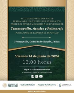 El Gobierno que encabeza el presidente, Andrés Manuel López Obrador, pedirá disculpas a las comunidades Temacapulín, Acasico y Palmarejo, tras los actos irresponsables de los gobiernos del PRIAN de querer inundarlas con la presa “El Zapotillo”.