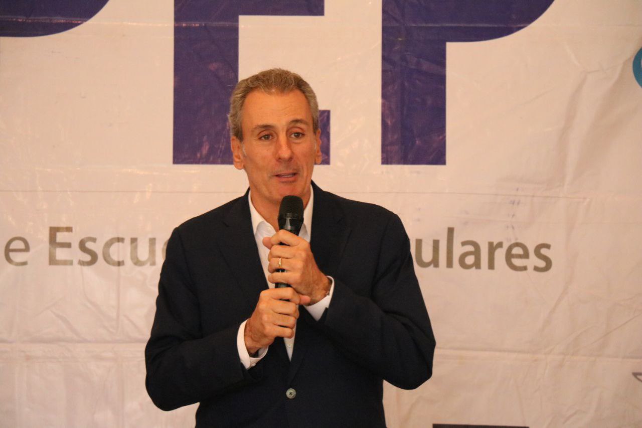 Puebla, Pue.- Soluciones a problemas específicos e inquietudes que viven todos las y los días directores, maestros, madres y padres de familia en instituciones educativas, desglosó Pepe Chedraui, candidato a la Presidencia Municipal, al acudir como invitado a la reunión de la Unión Poblana de Escuelas Particulares