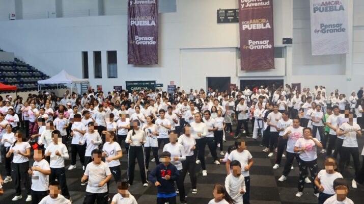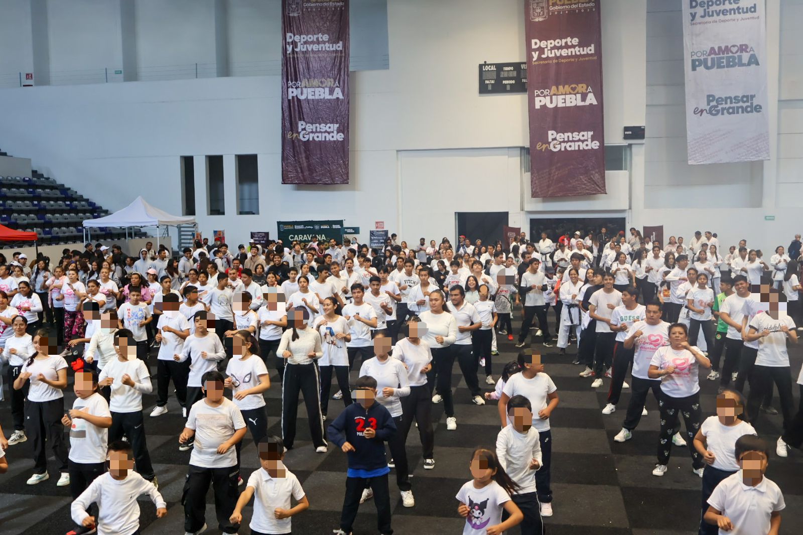 PUEBLA, Pue.- El Gobierno del Estado de Puebla, encabezado por Alejandro Armenta, a través de la Secretaría de Deporte y Juventud, dirigido por Gaby “La Bonita” Sánchez, llevó acabo en el gimnasio Miguel Hidalgo, tres importantes actividades de manera simultánea: La entrega de hasta 50 tatamis en igual número de municipios y juntas auxiliares, el Baile Fitness, en apoyo al Voluntariado de la dependencia, así como una jornada más del programa “Tejiendo Paz”.