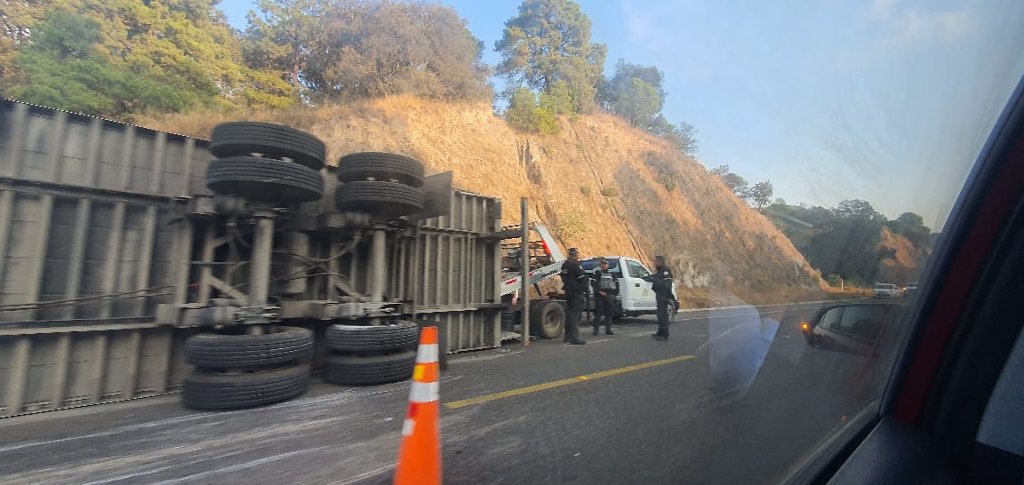 SE VOLTEA CAMIÓN DE CARGA EN LA CARRETERA PUEBLA – PEROTE
